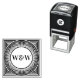 Efficiently personalise your items with this stylish custom self-inking rubber stamp, featuring a captivating layered geometric monogram design. The bold, architectural lines and concentric patterns elegantly frame your chosen initials, creating a distinct and modern impression with every press. Ideal for quickly adding a unique signature to cards, books, or small packages. This durable, pre-inked stamp provides thousands of crisp, consistent marks, saving you time while adding a sophisticated, personalised flourish. A perfect, practical tool for busy individuals, small businesses, or a thoughtful gift for new couples and personal branding.