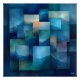 This abstract geometric art print showcases a layered composition of serene mountain landscapes in varying shades of blue and teal. The overlapping rectangular patterns create a sense of depth and movement, perfect for modern or abstract art lovers. This striking design adds a tranquil and contemporary touch to any home or office décor.