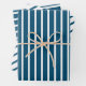 Geometric Ocean Blue and White Stripes Wrapping Paper Sheet