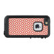 Protect your iPhone SE and iPhone 5/5s with a waterproof LifeProof® case featuring a geometric orange and white meander pattern with a window to showcase the Apple logo on the back of the phone. White meanders angle around orange diamonds containing white diamonds. Orange zigzags provide subtle separation between the winding paths.