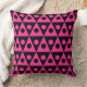 Geometric Pattern 260514 - Hot Pink on Black Cushion