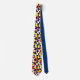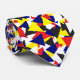 Colourful neck tie featuring a geometric pattern of triangular maritime flags. Red, white, blue, black, yellow nautical flags.