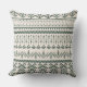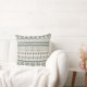 This pillow showcases an intricate geometric pattern on a cream-coloured background, featuring dark green designs. The symmetrical arrangement of diamonds, triangles, and lines creates a visually striking and structured aesthetic. The repeating horizontal rows add depth and character to the pillow, making it an excellent decorative piece for a modern or bohemian-styled space.