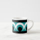 Geometric pattern illustration with stripes, circles and round shapes in turquoise, black and white colours