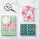 Geometric Pattern In Pink And Green Wrapping Paper Sheet Set of 3