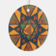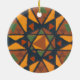 A round ornament with a traditional Islamic star pattern in black, gold, brown and green, from a screenprint by Judy Adamson.