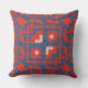 Geometric Pattern Red Shapes on Blue Background Cushion
