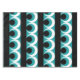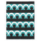 Geometric pattern illustration with stripes, circles and round shapes in turquoise, black and white colours