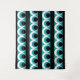 Geometric pattern illustration with stripes, circles and round shapes in turquoise, black and white colours