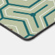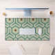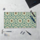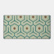 Geometric pattern with interlocking hexagons in green and teal, featuring brown hexagons in the center. The design is symmetrical and retro-inspired.