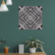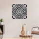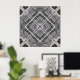This abstract geometric design features mirrored snowy tree branches arranged in a diamond-shaped kaleidoscope pattern. Shades of grey, white, and muted brown create a wintry palette, while bold intersecting white lines add modern structure. The combination of natural textures and geometric symmetry gives this piece a striking balance of organic beauty and contemporary style.