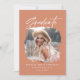 Geometric photo typography graduation announcement. Featuring bold typography and on trend script text. Geometric terracotta background colour can be altered.