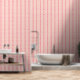 White wallpaper, pink geometric patterns, modern decor, contemporary design, minimalist style, chic interiors, playful shapes, stylish accent, versatile wallpaper, trendy home decor