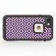 Protect your iPhone 7 with a waterproof, shock absorbing LifeProof® case featuring a geometric purple and white meander pattern with a window to showcase the Apple logo on the back of the phone. This bold regal purple and white pattern is an original ornamental design. Purple diamonds with white borders are surrounded by royal purple meanders which angle around them. White zigzags separate the winding purple paths and offset diamonds.