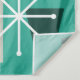A retro abstract art design with symmetrical and asymmetrical geometric bowl shapes and lines. Teal turquoise, orange, yellow and grey.