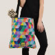 This monogram tote bag has all the rainbow colours to go with everything and never be out of fashion. Created in a geometric repeating pattern or triangle shapes. Your choice of medium or large and two styles (tote or messenger). Just personalise the monogram text in the easy Zazzle editor. Matching face mask and other colour options available in this same style at Bee's Bags and Cases on Zazzle.