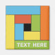 Design shows pattern of rectangles in matching colors. The center square is black by default, but can be recolored by changing the background color. Or you can insert a small square photo. Text can easily be edited, moved or removed.