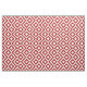 Stylish fabric features a bold, geometric red and white meander pattern. The original ornamental design has white meanders that angle around red diamonds containing white diamonds. Red zigzags provide subtle separation between the winding paths.