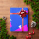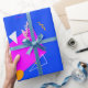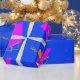 A neon blue and pink 80s-themed retro wrapping paper design for any occasion, especially birthdays and holidays.