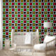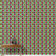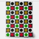 Chequered Geometric Retro Classic circle Dots red, green, yellow, black and white Black and White on grey and black squares Pattern Design Wallpaper
