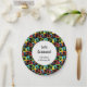 This paper plate is decorated with a cool graphic geometric pattern featuring rounded rectangles and circles with offset cutouts, reminiscent of mid century modern design, has been updated with a lively palette of various colours. Text is easy to customise for your party or event.