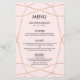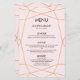Wedding dinner menu card in geometric rose gold pattern.