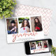 Art Deco Geometric Rose Gold Handwritten Graduation Multiple Photo Card in a font that is elegant and evokes a chic, handwritten feel. On the back is a trendy, geometric art deco style design in chic rose gold foil. Designed to use three of your favourite photos for added customisation. Easily add your names and dates for a truly personalised design.