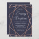 Geometric Rose Gold on Dark Blue Evening Reception Invitation