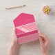 Geometric Roses Red All in One Wedding Invitation features a geometric pattern of roses with pink, coral and red with complementary red colour that blends harmoniously as one. The slanting typography simply creates a unique styling with the coral pink strip to highlight.