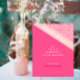 features a geometric pattern of roses with pink, coral and red with complementary red colour that blends harmoniously as one. The slanting typography simply creates a unique styling with the coral pink strip to highlight.