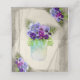 An elegant geometric design with rustic background and pansies. The back has a bouquet of pansies in a mason jar. This place card is part of a complete wedding invitation set.
