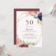 This geometric rustic gold 50th birthday party invitation is perfect for a modern birthday party. The design features hand-drawn watercolor purple, navy, blush, burgundy, navy flowers, green and gold leaves adorning an elegant geometric frame.