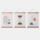 Pastel tones and modern geometric shapes in three different compositions—trendy contemporary design.