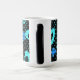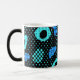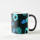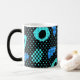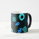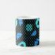 Coffee mug with geometric shapes and dots blue and turquoise colours on black background