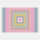 This simple vintage modern quilt design features a pattern of squares and rectangles in pastel colours.