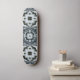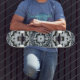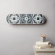 An intricate black, grey and blue geometric pattern decorates this cool board.