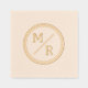 Geometric design of Foil Stamped Napkins with monograms. Wedding napkin with two monograms in minimalist style.