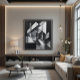 Elevate your decor with this black and white geometric art. Interconnected shapes create depth and sophistication. Ideal for modern and minimalist environments that value timeless elegance and bold design.