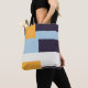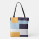 Trendy colour blocking tote bag with yellow, blue, white and navy blue.