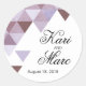 This pretty, round sticker features a bold, geometric diamond/triangle pattern in shades of periwinkle blue, lavender and aubergine. Many matching products available. TO SEE THE ENTIRE COLLECTION, VISIT: glamprettyweddings.com. Available in 8 fabulous colours: fuschia, coral, lilac, mint, teal, pink, periwinkle and yellow. Click the CUSTOMIZE IT button to personalise with your own text. For questions or custom requests, email: cheryl@glamprettyweddings.com/contact. "Geometric Triangles" original design by Cheryl Daniels © 2014.