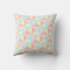 Retro geometric triangles pattern decorative throw pillow in light pastel yellow, light pink and aqua sky blue.