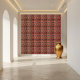 This geometric tribal pattern tile showcases a dynamic arrangement of abstract shapes in a warm and inviting colour scheme. Its bold design makes it a fantastic statement piece for any room. Use it to create a unique tiled surface or as an individual decorative element.