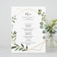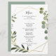 This geometric tropical green leaves Spanish dinner menu card is perfect for a modern wedding. The design features hand-painted beautiful green leaves, adorning a gold geometric frame.