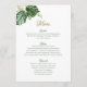 Tropical Watercolor Green Palm Leaves Art Wedding Menu Card.