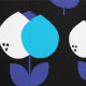 Geometric Tulips Blue and Black Wallpaper