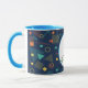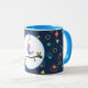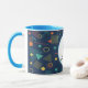 Check Funny tweety bird geometric pattern Mug with yellow-orange green colours having squares, rectangles, and circles shapes, you can change the background colour and tweety bird design have a fun drink ...