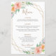 Wedding dinner menu card in geometric watercolor flower design pattern.