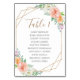 Wedding seating chart card in geometric watercolor flower design pattern.