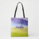 Geometric wave lime yellow lavender with name tote bag