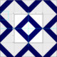 A bold, geometric pattern of interlocking navy and white diamond shapes. The dark blue diamonds each contain a small white diamond making white the dominant colour of the fabric design.